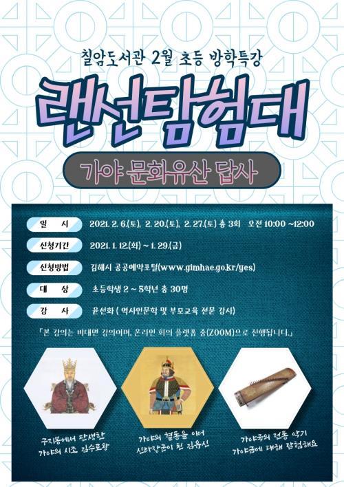 [½Åµ¿¾Æ¹æ¼Û=Ȳ¿ëȯ ±âÀÚ] Ä¥¾Ïµµ¼­°ü(°üÀå ¹ÚÀº¼÷)Àº 2¿ù ¹æÇРƯ°­À¸·Î È­»óȸÀÇ Ç÷§Æû ÁÜ(ZOOM)À» ÀÌ¿ëÇÑ ¡°·£¼±Å½Çè´ë °¡¾ß¹®È­À¯»ê ´ä»ç¡±ÇÁ·Î±×·¥À» ¿î¿µÇÑ´Ù°í ¹àÇû´Ù. ´ÙÀ½´Þ 6ÀϺÎÅÍ ÁøÇà ¿¹Á¤ÀÎ À̹ø °­ÀÇÀº ÃʵîÇлý 30¸íÀ» ´ë»óÀ¸·Î Çϸç, À±¼±È­ °­»ç(¡¦