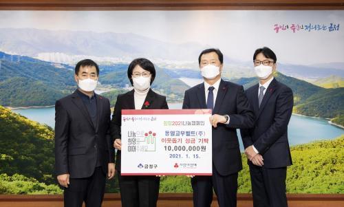 [½Åµ¿¾Æ¹æ¼Û=º¯ÀçÈ£ ±âÀÚ] µ¿ÀÏ°í¹«º§Æ®¢ß(´ëÇ¥ÀÌ»ç ÀÌÀ±È¯)´Â Áö³­ 15ÀÏ ºÎ»ê ±ÝÁ¤±¸(±¸Ã»Àå Á¤¹Ì¿µ)¿¡ Àú¼ÒµæÃþ û¼Ò³âÀ» À§ÇÑ ¡®Èñ¸ÁÀÇ »ç´Ù¸® ¿îµ¿ »ç¾÷¡¯¿¡ 1000¸¸ ¿øÀ» ±âŹÇß´Ù. µ¿ÀÏ°í¹«º§Æ®(ÁÖ)´Â 2010³âºÎÅÍ ¸Å³â ÀÌ¿ôµ½±â¼º±ÝÀ» ²ÙÁØÈ÷ ±âŹÇϸç ÈÆÈÆÇÑ »ç¡¦
