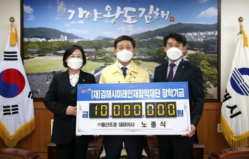 [½Åµ¿¾Æ¹æ¼Û=Ȳ¿ëȯ ±âÀÚ] ±èÇØ½Ã ¹Ì·¡ÀÎÀçÀåÇÐÀç´Ü(ÀÌ»çÀå ÇöÁ¾¿ø)Àº ±èÇØÁö¿ª ´ëÇ¥ Á¶°æ¾÷üÀÎ ¢ßÈï»êÁ¶°æ(´ëÇ¥ ³ëÁ¾½Ä)¿¡¼­ 1000¸¸¿øÀ» ±âŹÇß´Ù°í 21ÀÏ ¹àÇû´Ù. ¿ÃÇØ ⸳ 23ÁÖ³âÀ» ¸Â´Â ¢ßÈï»êÁ¶°æÀº Á¶°æ ¿Ü±æÀ» °ÉÀ¸¸ç ÃàÀûµÈ dzºÎÇÑ °æÇè°ú ½Ç·ÂÀ» ¹ÙÅÁÀ¸·Î¡¦
