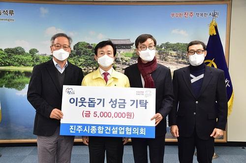 [½Åµ¿¾Æ¹æ¼Û=°­¿µÈÆ ±âÀÚ] ÁøÁÖ½ÃÁ¾ÇհǼ³¾÷ÇùÀÇȸ(ȸÀå À̺´±¹)¿Í BNK°æ³²ÀºÇà(¼­ºÎ¿µ¾÷º»ºÎÀå ±è¾ç¼÷)Àº 26ÀÏ ¿ÀÈÄ 3½Ã ÁøÁÖ½ÃûÀ» ¹æ¹®ÇØ °ü³» ¾î·Á¿î ÀÌ¿ôÀ» À§ÇØ ¼º±ÝǰÀ» Àü´ÞÇß´Ù. °Ç¼³¾÷¿¡ Á¾»çÇÏ´Â 48¸íÀÇ È¸¿øÀ¸·Î ±¸¼ºµÈ ÁøÁÖ½ÃÁ¾ÇհǼ³¾÷ÇùÀÇȸ´Â ȸ¿øµé¡¦