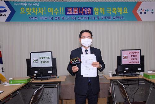 [½Åµ¿¾Æ¹æ¼Û=±è±â³² ±âÀÚ] ±Ç¿ÀºÀ ¿©¼ö½ÃÀåÀÌ ¿©¼ö½Ã Àü½Ã¹Î Äڷγª19 ±ä±ÞÀç³­Áö¿ø±Ý Áö±Þ ù ³¯ÀÎ 2¿ù 1ÀÏ Ãâ±Ù±æ¿¡ ½ÃÀüµ¿»ç¹«¼Ò¿¡ µé·¯ ¹Ì¼ö·É ½Åû¼­¿¡ ¼­¸íÇÏ¸ç ³ª´® Ä·ÆäÀο¡ µ¿ÂüÇß´Ù. Áö³­ ´Þ 29ÀÏ Áö±ÞÁغñ»óȲ »çÀüÁ¡°Ë¿¡ À̾î Áö±Þ ´çÀÏ ½Ã¹ÎµéÀÇ ºÒÆí¡¦