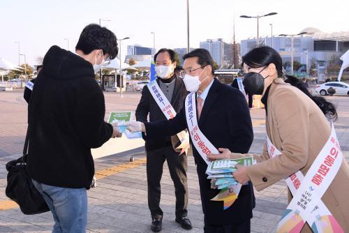 [½Åµ¿¾Æ¹æ¼Û=±è±â³² ±âÀÚ] ±Ç¿ÀºÀ ¿©¼ö½ÃÀåÀÌ 10ÀÏ ¿©¼ö¿¢½ºÆ÷¿ª¿¡¼­ ¼³À» ¸Â¾Æ °íÇâÀ» ãÀº ±Í¼º°´µéÀ» ȯ¿µÇϸç, ¾ÈÀüÇÑ ¸íÀýÀ» À§ÇØ ¹æ¿ª¼öÄ¢À» öÀúÈ÷ ÁؼöÇØ ÁÙ °ÍÀ» È«º¸Çß´Ù. À̳¯ ±Ç ½ÃÀåÀº ±Í¼º°´µé¿¡°Ô ¸¶½ºÅ©¿Í Ç×±ÕÆ¼½´¸¦ ÀüÇϸç öÀúÇÑ ¹æ¿ª¼öÄ¢ Áؼö¡¦