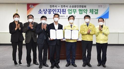 [½Åµ¿¾Æ¹æ¼Û=°­¿µÈÆ ±âÀÚ] ÁøÁÖ½Ã(½ÃÀå Á¶±ÔÀÏ)´Â 23ÀÏ ½Ãû »óȲ½Ç¿¡¼­ ÁøÁֽà ¼Ò»ó°øÀο¬ÇÕȸ¿Í »ó»ý¹ßÀü ¾÷¹« Çù¾à½ÄÀ» °¡Á³´Ù. À̳¯ Çù¾à½ÄÀº ÁøÁÖ½Ã¿Í ÁøÁֽà ¼Ò»ó°øÀο¬ÇÕȸ°¡ Äڷγª19 ±Øº¹À» À§ÇÑ »çȸÀû °Å¸®µÎ±â, ÁýÇÕ±ÝÁö¡¤Á¦ÇÑ µîÀ¸·Î ÀÎÇÑ ¼Òºñ½É¸® À§Ãࡦ