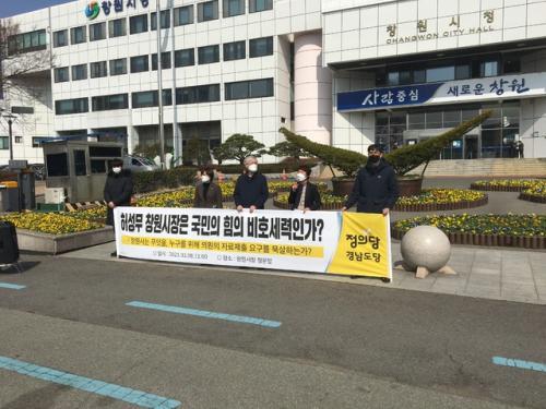 [½Åµ¿¾Æ¹æ¼Û=Ç㳪¿µ ±âÀÚ] °æ³² â¿ø½Ã »çÆÄÁö±¸ µµ½Ã°³¹ß»ç¾÷°ú °¡À½Á¤°ø¿ø »ç¾÷°ú °ü·ÃÇØ Á¤º¸°ø°³ û±¸ ¿©ºÎ¸¦ µÎ°í Á¤ÀÇ´ç°ú â¿ø½Ã°¡ °¥µîÀ» ºú°í ÀÖ´Ù. 8ÀÏ Á¤ÀÇ´ç °æ³²µµ´çÀº ÀÚ·á Á¦ÃâÀ» °ÅºÎÇϴ â¿ø½Ã¸¦ ºñÆÇÇÏ´Â ±âÀÚȸ°ßÀ» °¡Á³´Ù. ÃÖ¿µÈñ â¿ø½ÃÀÇ¿øÀº¡¦