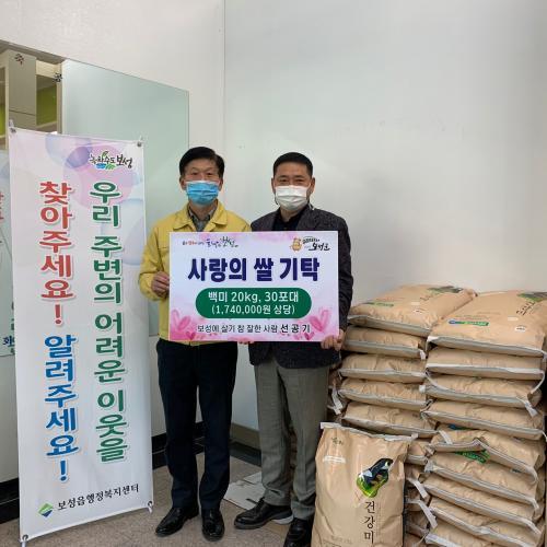 [½Åµ¿¾Æ¹æ¼Û=¹Ú±¤¿Á ±âÀÚ] 18ÀÏ º¸¼º³óÇù ¼±°ø±â Á÷¿øÀÌ º¸¼ºÀ¾¿¡ °ÅÁÖÇÏ´Â º¹Áö»ç°¢Áö´ë Áֹε鿡°Ô Àü´ÞÀ» ºÎŹÇÑ´Ù¸ç 170¸¸ ¿ø »ó´çÀÇ ¹é¹Ì 30Æ÷(20kg)¸¦ ±âŹÇß´Ù. ¼±°ø±â ¾¾´Â ¡°Æò¼Ò ÁÖº¯¿¡ ¾î·Á¿î ÀÌ¿ôµéÀ» À§ÇÏ¿© ³ª´®À» ½ÇõÇÏ°í ½Í¾ú´Ù.¡±¸é¼­ ¡°ÀÛ°Ô³ª¸¶¡¦