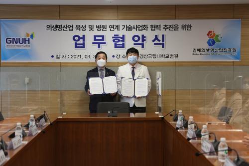 [½Åµ¿¾Æ¹æ¼Û=±èÇØ Ȳ¿ëȯ ±âÀÚ] ±èÇØÀÇ»ý¸í»ê¾÷ÁøÈï¿ø(ÀÌÇÏ ÁøÈï¿ø, ¿øÀå À±Á¤¿ø)°ú â¿ø°æ»ó±¹¸³´ëÇб³º´¿ø(º´¿øÀå ÀÌ¿µÁØ)ÀÌ Áö³­ 24ÀÏ ±èÇØ½Ã ÀÇ»ý¸í»ê¾÷ À°¼º ¹× º´¿ø ¿¬°è ±â¼ú»ç¾÷È­ Çù·ÂÀ» ¸ñÇ¥·Î â¿ø°æ»ó±¹¸³´ëÇб³º´¿ø¿¡¼­ ¾÷¹«Çù¾à(MOU)À» ü°áÇß´Ù. À̹ø¡¦