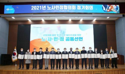 [½Åµ¿¾Æ¹æ¼Û=Ç㳪¿µ ±âÀÚ] â¿ø½Ã ³ë»ç¹ÎÁ¤ÇùÀÇȸ(À§¿øÀå Ç㼺¹«)°¡ 30ÀÏ Çѱ¹³ëÃÑ, â¿ø»ó°øÈ¸ÀǼÒ, â¿ø°í¿ë³ëµ¿Áöû, ¾ÈÀüº¸°Ç°ø´Ü °æ³²Áö¿ªº»ºÎ µî ³ë»ç¹ÎÁ¤ ´ëÇ¥ 17¸íÀÌ Âü¼®ÇÑ °¡¿îµ¥ '»ê¾÷ÀçÇØ ¿¹¹æ ¹× ¾ÈÀüÇÑ ÀÏÅÍ Á¶¼ºÀ» À§ÇÑ ³ë»ç¹ÎÁ¤ °øµ¿¼±¾ð¹®'À» äÅÃÇß´Ù¡¦