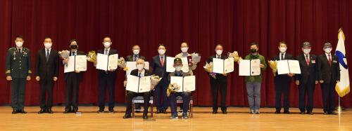 [½Åµ¿¾Æ¹æ¼Û=±è±â³² ±âÀÚ] ¿©¼ö½Ã´Â 4¿ù Á¤·Êȸ¿¡¼­ 6‧25ÂüÀüÀ¯°øÀÚ È­¶û¹«°øÈÆÀåÀ» ±¹¹æºÎÀå°üÀ» ´ë½ÅÇØ ¹«°ø¼öÈÆ °ø·ÎÀÚ ¹× À¯Á·¿¡°Ô Àü¼öÇß´Ù°í 1ÀÏ ¹àÇû´Ù. À̹ø Àü¼ö½ÄÀº 6‧25ÂüÀüÀ¯°øÀÚ ¹«°øÈÆÀå ã¾ÆÁֱ⠻ç¾÷ÀÇ ÀÏȯÀ¸·Î ÃßÁøµÆÀ¸¸ç, 6‧2¡¦