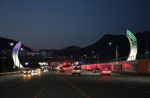 [½Åµ¿¾Æ¹æ¼Û=Ȳ¿ëȯ ±âÀÚ] ±èÇØÀÇ ´ëÇ¥ °ü¹® µ¿±èÇØIC ÁøÃâÀԺο¡ ½Ö¾î ¹®¾çÀ» Çü»óÈ­ÇÑ ´ëÇü Á¶Çü¹°ÀÌ ¼³Ä¡µÇ¾î ¿õÀåÇÏ°í ¾Æ¸§´Ù¿î ÀÚÅ·Π¿À°¡´Â ½Ã¹ÎÀÇ ´«±æÀ» »ç·ÎÀâ°í ÀÖ´Ù. ½Ö¾î´Â °¡¾ß¿Õµµ ±èÇØÀÇ Á¤Ã¼¼ºÀ» ´ãÀº ´ëÇ¥ ¹®¾çÀ¸·Î µÎ ¸¶¸® ¹°°í±â Áß ÇÑ ¸¶¸®´Â ¡¦