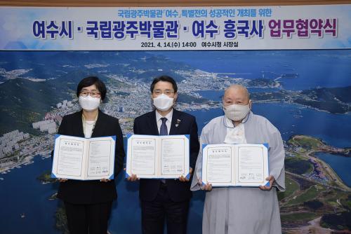 [½Åµ¿¾Æ¹æ¼Û=±è±â³² ±âÀÚ] ¿©¼ö½Ã(½ÃÀå ±Ç¿ÀºÀ)°¡ ³»³â 5¿ùºÎÅÍ 8¿ù±îÁö ±¹¸³±¤ÁÖ¹Ú¹°°ü ±âȹÀü½Ã½Ç¿¡¼­ ¿­¸®´Â ¡®¿©¼ö Ưº°Àü¡¯ ¼º°ø°³ÃÖ¸¦ À§ÇØ Áö³­ 14ÀÏ ¿ÀÈÄ ½ÃÀå½Ç¿¡¼­ ±¹¸³±¤ÁÖ¹Ú¹°°ü, ¿©¼ö Èï±¹»ç¿Í ¾÷¹«Çù¾àÀ» ü°áÇß´Ù. À̳¯ ±Ç¿ÀºÀ ¿©¼ö½ÃÀå°ú À̼ö¹Ì ±¹¸³¡¦