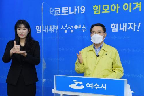 [½Åµ¿¾Æ¹æ¼Û=±è±â³² ±âÀÚ] ¿©¼ö½Ã(½ÃÀå ±Ç¿ÀºÀ)°¡ Áö³­ 4ÀÏ 0½ÃºÎÅÍ °Ý»óÇÑ »çȸÀû°Å¸®µÎ±â 2´Ü°è¸¦ ½Ã¹ÎÀÇ ¾ÈÀü°ú °æÁ¦ÀÇ Á¶±â ȸº¹À» À§ÇØ 16ÀÏ 24½Ã±îÁö ¿¬ÀåÇÑ´Ù°í 9ÀÏ ¹àÇû´Ù. ±Ç¿ÀºÀ ¿©¼ö½ÃÀåÀº 9ÀÏ ¿ÀÈÄ ¿µ»ó½Ç¿¡¼­ ºê¸®ÇÎÀ» ÅëÇØ ¡°À¯Èï½Ã¼³, ¸¶»çÁö¾÷¼Ò¡¦