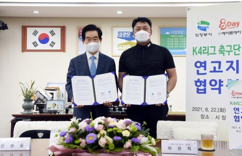 [½Åµ¿¾Æ¹æ¼Û=¾ÈÀº°æ ±âÀÚ] ÀÇÁ¤ºÎ½Ã(½ÃÀå ¾Èº´¿ë)´Â 6¿ù 22ÀÏ ÀÇÁ¤ºÎ½Ãû¿¡¼­ ¢ß¿¡ÀÌÆ®µ¥ÀÌ(´ëÇ¥ÀÌ»ç Çã°üÇõ)¿Í K4¸®±× Ã౸´Ü ¿¬°íÁö Çù¾àÀ» ü°áÇß´Ù. À̹ø Çù¾àÀº ¢ß¿¡ÀÌÆ®µ¥À̰¡ â´ÜÇÒ K4¸®±× Ã౸´ÜÀÇ ¿¬°íÁö ÁöÁ¤À» ÀÇÁ¤ºÎ½Ã¿¡ Á¦¾ÈÇÏ¿´°í, ÀÌ¿¡ µû¸¥ ÇùÀǸ¦¡¦