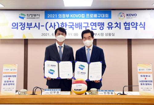 [½Åµ¿¾Æ¹æ¼Û=¾ÈÀº°æ ±âÀÚ] ÀÇÁ¤ºÎ½Ã(½ÃÀå ¾Èº´¿ë)´Â 6¿ù 28ÀÏ ÀÇÁ¤ºÎ½Ãû »óȲ½Ç¿¡¼­ 2021 ÀÇÁ¤ºÎ KOVOÄÅ ÇÁ·Î¹è±¸´ëȸ(ÀÌÇÏ¡®ÀÇÁ¤ºÎ KOVOÄÅ¡¯) À¯Ä¡Çù¾àÀ» ü°áÇß´Ù. À̳¯ Çù¾à½ÄÀº ¾Èº´¿ë ÀÇÁ¤ºÎ½ÃÀåÀ» ºñ·ÔÇØ ©ÅÇѱ¹¹è±¸¿¬¸Í ½Å¹«Ã¶ »ç¹«ÃÑÀå, ±èÀåÈñ »ç¹«±¹Àå°ú ¡¦