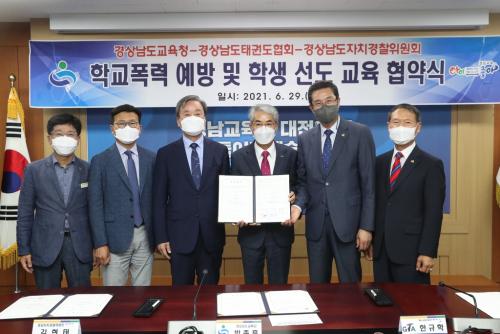 [½Åµ¿¾Æ¹æ¼Û=Ç㳪¿µ ±âÀÚ] °æ³²µµ±³À°Ã»Àº 29ÀÏ µµÀÚÄ¡°æÂûÀ§¿øÈ¸, °æ»ó³²µµÅ±ǵµÇùȸ¿Í 'Çб³Æø·Â ¿¹¹æ ¹× Çлý ¼±µµ±³À°'À» À§ÇÑ ¾÷¹«Çù¾àÀ» Çß´Ù. µµ±³À°Ã» ÁßȸÀǽǿ¡¼­ ¿­¸° Çù¾à½Ä¿¡´Â ¹ÚÁ¾ÈÆ ±³À°°¨, ±èÇöÅ ÀÚÄ¡°æÂûÀ§¿øÀå, ÇѱÔÇÐ ÀÚÄ¡°æÂûÀ§¿øÀÌÀÚ µµÅ±ǡ¦