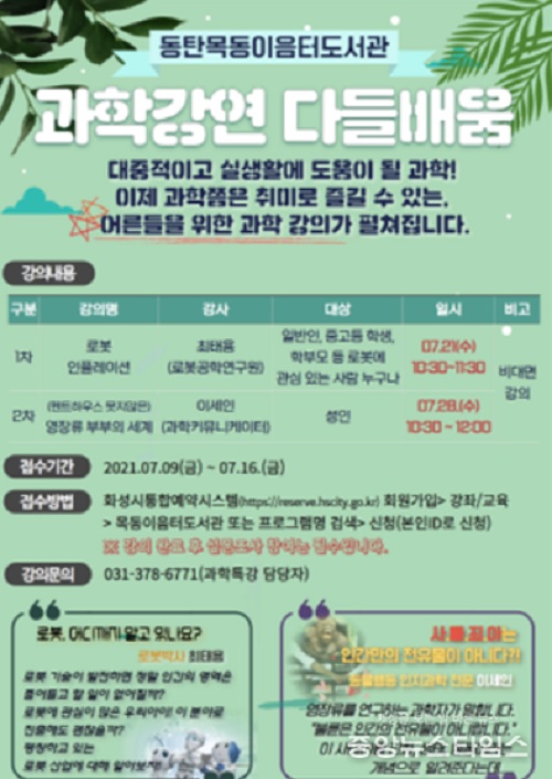 [½Åµ¿¾Æ¹æ¼Û=ÀÌÀçö ±âÀÚ] È­¼º½Ã¹®È­Àç´Ü(´ëÇ¥ÀÌ»ç ÀÌÁ¾¿ø) µ¿Åº¸ñµ¿ÀÌÀ½Å͵µ¼­°ü¿¡¼­ ¼ºÀΠ´ë»ó °úÇРƯ°­ ¡¸´Ùµé¹è¿ò S.F.A.(SCIENCE FOR ADULTS)¡¹ Âü¿©ÀÚ¸¦ 7¿ù 9ÀϺÎÅÍ ¸ðÁýÇÑ´Ù.  ¡¦