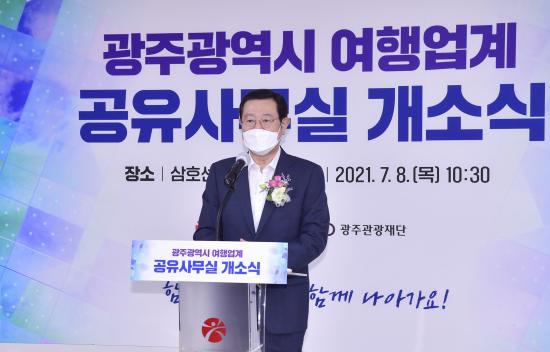 [½Åµ¿¾Æ¹æ¼Û=À̺´±¸ ±âÀÚ] ±¤ÁÖ±¤¿ª½Ã°¡ Äڷγª19 Àå±âÈ­·Î Á÷°ÝźÀ» ¸Â°í ÀÖ´Â ±¤ÁÖÁö¿ª ¿©Çà¾÷°è¸¦ µ½±â À§ÇØ ¡®°øÀ¯ »ç¹«½Ç¡¯À» ¸¶·ÃÇØ Áö¿øÇÑ´Ù. Áö¹æÀÚÄ¡´Üü°¡ ÀÚü ¿¹»êÀ» Æí¼ºÇØ ¿©Çà¾÷°è¿¡ °øÀ¯»ç¹«½ÇÀ» Áö¿øÇÑ °ÍÀº ±¤Áֽð¡ Àü±¹¿¡¼­ óÀ½ÀÌ´Ù. ±¤Áֽá¦