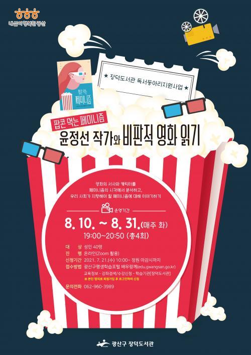 [½Åµ¿¾Æ¹æ¼Û=À̺´±¸ ±âÀÚ] ±¤ÁÖ ±¤»ê±¸(±¸Ã»Àå ±è»ïÈ£) Àå´öµµ¼­°üÀº 21ÀϺÎÅÍ ¡®ÆËÄÜ ¸Ô´Â Æä¹Ì´ÏÁò¡¯ À±Á¤¼± ÀÛ°¡¿Í ÁøÇàÇÏ´Â ºñÆÇÀû ¿µÈ­ Àбâ(ÀÌÇÏ ÆËÄÜ ¸Ô´Â Æä¹Ì´ÏÁò) Ư°­ÀÇ ¼ö°­»ýÀ» ¸ðÁýÇÑ´Ù°í ¹àÇû´Ù. ¡®ÆËÄÜ ¸Ô´Â Æä¹Ì´ÏÁò¡¯Àº 8¿ù10ÀϺÎÅÍ 31ÀϱîÁö ¸ÅÁÖ¡¦