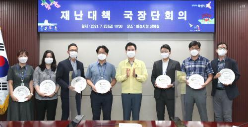 [½Åµ¿¾Æ¹æ¼Û=ÀÌÀçö ±âÀÚ] È­¼º½Ã´Â 23ÀÏ ½Ãû »óȲ½Ç¿¡¼­ ±¹Àå´Ü È¸ÀǸ¦ °³ÃÖÇÏ°í ¡®2021³â »ó¹Ý±â Àû±ØÇàÁ¤ ¿ì¼ö°ø¹«¿ø¡¯11¸íÀ» ½Ã»óÇß´Ù. ¿ì¼ö °ø¹«¿øÀº 1Â÷ ³»¿ÜºÎ Æò°¡´Ü ½É»ç¡¦