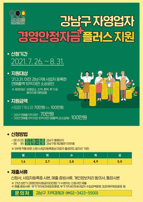 [½Åµ¿¾Æ¹æ¼Û=À̽ŵ¿ ±âÀÚ]°­³²±¸ »çȸÀû °Å¸®µÎ±â 4´Ü°è ½ÃÇàÀ¸·Î ÇÇÇØ¸¦ ÀÔÀº °ü³» ¼Ò»ó°øÀο¡°Ô Áö±ÞÇÏ´Â °æ¿µ¾ÈÁ¤ÀÚ±ÝÀ» 26ÀϺÎÅÍ ³»´Þ 31ÀϱîÁö ½Åû ¹Þ´Â´Ù. Áö¿ø´ë»óÀº ¿ÃÇØ 3¿ù 31ÀÏ ÀÌÀü¿¡ °³¾÷ÇÑ ¿¬ ¸ÅÃâ 10¾ï¿ø ¹Ì¸¸, »ó½Ã±Ù·ÎÀÚ 5ÀÎ ¹Ì¸¸(±¤¾÷¡¤Á¦Á¶¾÷¡¤°Ç¡¦