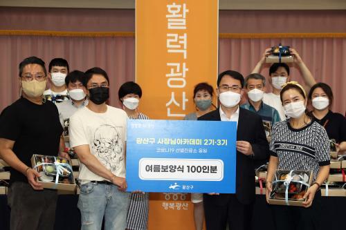 [½Åµ¿¾Æ¹æ¼Û=À̺´±¸ ±âÀÚ] ±¤»ê±¸ »çÀå´Ô ¾ÆÄ«µ¥¹Ì 2±â¡¤3±â ¼ö·á»ý(ȸÀå º¯Á¤¿­, ·ùÅÂÇü)ÀÌ Æø¿° ¼Ó¿¡¼­ Äڷγª19 È®»ê ¹æÁö¸¦ À§ÇØ ¾Ö¾²°í ÀÖ´Â ±¤»ê±¸ ¼±º°Áø·á¼Ò ÀÇ·áÁøÀ» ÀÀ¿øÇϱâ À§ÇÑ ³ª´® Ȱµ¿¿¡ ³ª¼¹´Ù. »çÀå´Ô ¾ÆÄ«µ¥¹Ì 2±â‧3±â ¼ö·á»ýµéÀº 28ÀÏ ¿ÀÀü¡¦