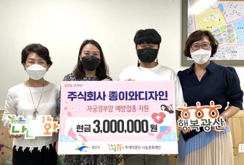 [½Åµ¿¾Æ¹æ¼Û=±èÀçÂù ±âÀÚ] ±¤ÁÖ ±¤»ê±¸ ÷´Ü1µ¿¿¡ Àú¼Òµæ °¡Á¤ÀÇ ÀڱðæºÎ¾Ï ¹é½Å¿¹¹æ Á¢Á¾À» À§ÇÑ ³ª´®ÀÇ ¼Õ±æÀÌ À̾îÁö°í ÀÖ´Ù. ÷´Ü1µ¿Àº ¡®Á¾ÀÌ¿Í µðÀÚÀΡ¯ ½ÅÂù¹ü ´ëÇ¥°¡ ÃÖ±Ù ÀڱðæºÎ¾Ï ¹é½Å¿¹¹æ Á¢Á¾ºñ 300¸¸ ¿øÀ» Àü´ÞÇØ ¿Ô´Ù°í ¹àÇû´Ù. ½ÅÂù¹ü ´ëÇ¥´Â ¡°¡¦