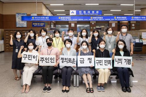[½Åµ¿¾Æ¹æ¼Û=º¯ÀçÈ£ ±âÀÚ] ºÎ»ê ±ÝÁ¤±¸(±¸Ã»Àå Á¤¹Ì¿µ)´Â Áö³­ 3ÀÏ ¹Î¿ø ´ã´çÀÚ Á÷¿øÀ» ´ë»óÀ¸·Î ¡®Ä£Àý ½Çõ °áÀÇ´ëȸ¡¯¿Í ¡®¼ÒÅë °£´ãȸ¡¯¸¦ ¿­¾ú´Ù. À̳¯ Çà»ç¿¡´Â Á¤¹Ì¿µ ±ÝÁ¤±¸Ã»ÀåÀ» ºñ·ÔÇØ ¹Î¿ø ´ã´çÀÚ 20¿© ¸íÀÌ Âü¼®Çß´Ù. À̵éÀº ¡®Ä£Àý ½Çõ¡¯ °áÀǹ® ³¶µ¶¡¦