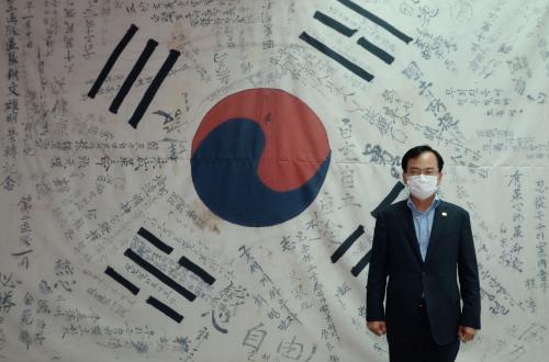 (½Åµ¿¾Æ¹æ¼Û=À̺´±¸±âÀÚ) ±¤ÁÖ ±¤»ê±¸(±¸Ã»Àå ±è»ïÈ£)°¡ Á¦76Áֳ⠱¤º¹ÀýÀ» ¸Â¾Æ ±¸Ã»»ç 1Ãþ Çö°ü¿¡ ¡®Çѱ¹±¤º¹±º ¼­¸í¹® űر⡯¸¦ Àü½ÃÇÑ´Ù. ±¤»ê±¸°¡ Àü½ÃÇϴ űرâ´Â 1946³â Çѱ¹±¤º¹±º Á¦3Áö´ë 2±¸´ë¿¡¼­ Ȱµ¿ÇÏ´ø ¹®¿õ¸í(¹®¼ö¿­) ¼±»ýÀÌ ºÎ´ë¸¦ ¿Å±â°Ô µÇÀÚ ¡¦