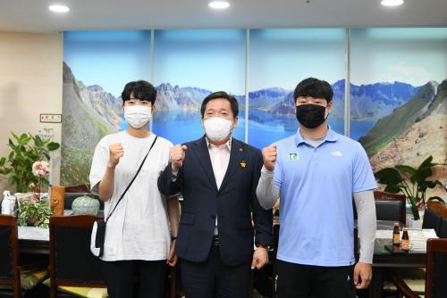 (½Åµ¿¾Æ¹æ¼Û=À̺´½Ä±âÀÚ) µµÄì¿Ã¸²ÇÈ ¾ç±Ã 3°ü¿Õ¿¡ ¿À¸¥ ½ºÆ÷Ã÷ ½ºÅ¸ ¾È»ê ¼±¼ö°¡ 19ÀÏ ¿ÀÈÄ 3½Ã 30ºÐ²² ±¤ÁÖ ³²±¸Ã»À» ±ô¦ ¹æ¹®, ±èº´³» ±¸Ã»Àå¿¡°Ô °¨»çÀÇ ¸¶À½À» ÀüÇß´Ù. ¾È»ê ¼±¼ö´Â À̳¯ ¿ÀÈÄ 2½Ã ±¤ÁÖ½Ãû¿¡¼­ ¿­¸° ¡®2025³â ¼¼°è ¾ç±Ã¼±¼ö±Ç ´ëȸ À¯Ä¡ Ãâ¹ü½Ä¡¦