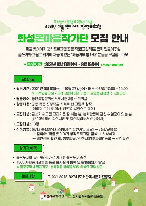 È­¼º½Ã¹®È­Àç´Ü µµ¼­°ü, ¸¶À» ¿¾À̾߱⠰øµ¿ Ã¢ÀÛÀ» À§ÇÑ¡®È­¼º¿Â¸¶À»ÀÛ°¡´Ü¡¯¸ðÁý