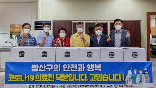 [½Åµ¿¾Æ¹æ¼Û=±èÀçÂù±âÀÚ] ±¤ÁÖ ±¤»ê±¸ ¼ö¿Ïµ¿ Áö¿ª»çȸº¸ÀåÇùÀÇü(À§¿øÀå ±è±â¼ø)´Â ÃÖ±Ù ±¤»ê±¸ ¼±º°Áø·á¼Ò¿¡¼­ ±Ù¹«ÇÏ´Â ÀÇ·áÁøÀ» °Ý·ÁÇϱâ À§ÇØ ¡®Çܹö°Å ¼¼Æ®¡¯ 160°³(150¸¸ ¿ø »ó´ç)¸¦ Áö¿øÇß´Ù. ¡®Çܹö°Å ¼¼Æ®¡¯´Â ±¤ÁÖÀº±¤±³È¸(´ãÀÓ¸ñ»ç Àü¿øÈ£)ÀÇ ¼º±ÝÀ¸·Î ¡¦