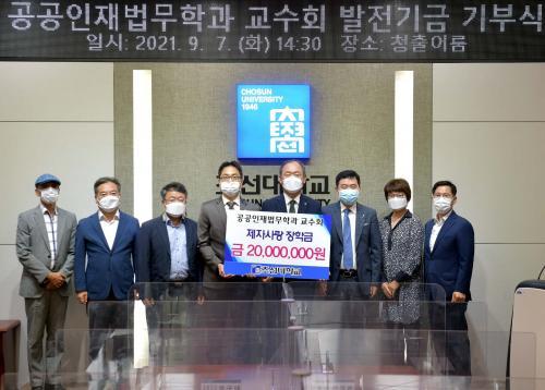 [½Åµ¿¾Æ¹æ¼Û=±èÀçÂù±âÀÚ] Á¶¼±´ëÇб³ °ø°øÀÎÀç¹ý¹«Çаú ±³¼öȸ°¡ ÇлýµéÀ» À§ÇÑ Á¦ÀÚ»ç¶û ÀåÇбÝÀ» Á¶¼ºÇÏ°í ±âºÎ½ÄÀ» °¡Á³´Ù. Áö³­ 7ÀÏ ¿ÀÈÄ 2½Ã 30ºÐ Á¶¼±´ëÇб³ º»°ü 2Ãþ ûÃâ¾î·ë½Ç¿¡¼­ ¿­¸° ±âºÎ½ÄÀº Àü¹®¹ýÁ¶Àΰú »çȸ°¢°èÀÇ °øÁ÷ÀÚ ¾ç¼ºÀ» À§ÇØ °ø°øÀÎÀç¹ý¹«ÇС¦