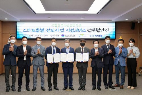 [½Åµ¿¾Æ¹æ¼Û=±èÀçÂù±âÀÚ] ±¤ÁÖ ¼­±¸(±¸Ã»Àå ¼­´ë¼®)°¡ Áö³­ 7ÀÏ LHÇѱ¹ÅäÁöÁÖÅðø»ç, (»ç)º¹Áö¸¶À»°ú ¡®½º¸¶Æ®µ¹º½ ¼±µµ»ç¾÷ ½Ã¹ü¼­ºñ½º¡¯ ÃßÁøÀ» À§ÇÑ 3ÀÚ°£ ¾÷¹«Çù¾àÀ» ü°áÇß´Ù°í ¹àÇû´Ù. À̹ø Çù¾àÀº LH°¡ °ü¸®ÇÏ´Â ÀÓ´ë¾ÆÆÄÆ® 100¼¼´ë¿¡ AIµðÁöÅÐ ±â¼úÀ» Ȱ¿ëÇÑ¡¦