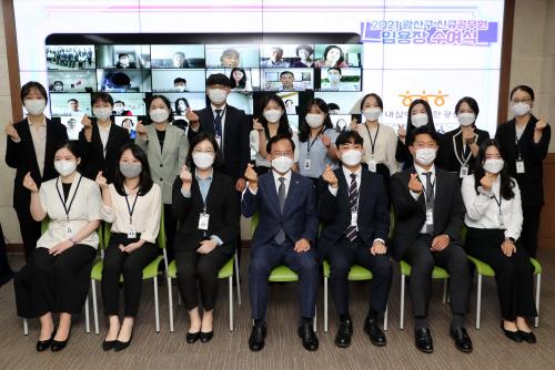 [½Åµ¿¾Æ¹æ¼Û=À̺´±¸±âÀÚ] ±¤ÁÖ ±¤»ê±¸(±¸Ã»Àå ±è»ïÈ£)°¡ 8ÀÏ »õ³»±â °øÁ÷ÀÚÀÇ Ã¹ Ãâ¹ßÀ» ÃàÇÏÇÏ´Â ¡®¿ÂÅÃÆ® ·£¼± ÀÓ¿ë½Ä¡¯À» °³ÃÖÇß´Ù. ±¤»ê±¸´Â À̳¯ 2Ãþ »óȲ½Ç¿¡¼­ ¡®ÁÜ(Zoom)¡¯À» Ȱ¿ëÇØ 2021 ½Å±Ô °ø¹«¿ø 64¸í¿¡ ´ëÇÑ ÀÓ¿ëÀå ¼ö¿©½Ä °â ¿ÂÅÃÆ® ȯ¿µÈ¸¸¦ ÁøÇàÇß´Ù¡¦