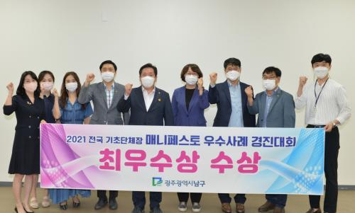 [½Åµ¿¾Æ¹æ¼Û=À̺´±¸±âÀÚ] ±èº´³» ±¤ÁÖ ³²±¸Ã»ÀåÀÌ ´õºÒ¾î »ç´Â °øµ¿Ã¼¸¦ À§ÇØ °¥µîÀ¸·Î ¾ó·èÁø Ǫ¸¥±æ °ø¿ø¿¡ Åä¿äÀåÅÍ »ç¾÷À» ÃßÁø, Çѱ¹¸Å´ÏÆä½ºÅä½Çõº»ºÎ ÁÖ°ü ¿ÃÇØÀÇ ÃÖ¿ì¼ö Á¤Ã¥ ¼ö»óÀÚ ¸í´Ü¿¡ À̸§À» ¿Ã·È´Ù. Áö³­ÇØ ¡®ÇູÇÑ º¹Áö 7979¼¾ÅÍ¡¯ »ç¾÷À¸·Î ÃÖ¿ì¼ö¡¦