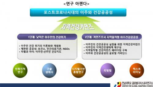 Àü³²´ëÇб³ ±Û·Î¹úµð¾Æ½ºÆ÷¶ó¿¬±¸¼Ò°¡ Çѱ¹¿¬±¸Àç´ÜÀÇ Àι®»çȸ¿¬±¸¼ÒÁö¿ø»ç¾÷ ´ë»óÀ¸·Î ¼±Á¤µÆ´Ù. Àü³²´ë ±Û·Î¹úµð¾Æ½ºÆ÷¶ó¿¬±¸¼Ò(¼ÒÀå ±è°æÇÐ)´Â ¡®Æ÷½ºÆ®Äڷγª½Ã´ëÀÇ ÀÌÁÖ¿Í °Ç°­°ø°ø¼º: Áö¿ª°Ç°­Ä¿¸ÕÁ Áß½ÉÀ¸·Î¡¯¶ó´Â ¿¬±¸ÁÖÁ¦·Î, Çѱ¹¿¬±¸Àç´ÜÀÌ ÁÖ°üÇÏ´Â 20¡¦