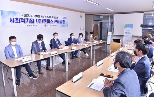 [½Åµ¿¾Æ¹æ¼Û=±èÀçÂù±âÀÚ]À̿뼷 ±¤ÁÖ±¤¿ª½ÃÀåÀº 10ÀÏ ¡®Äڷγª19 ±Øº¹À» À§ÇÑ ¹Î»ý°æÁ¦ Ưº°ÁÖ°£¡¯ µÎ ¹øÂ° ÀÏÁ¤À¸·Î »çȸÀû°æÁ¦ ±â¾÷ÀÎ (ÁÖ)¸àÆÛ½º¸¦ ¹æ¹®ÇØ Á÷¿øµé°ú °£´ãȸ¸¦ °®°í ¾Ö·Î»çÇ×À» ÆÄ¾ÇÇÑ µÚ Á¾»çÀÚµéÀ» °Ý·ÁÇß´Ù. ±¤ÁÖÁö¿ª ´ëÇ¥Àû »çȸÀû±â¾÷ÀÎ ¢ß¸àÆÛ¡¦