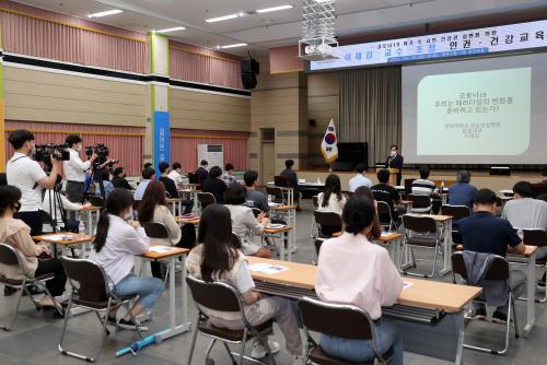 [½Åµ¿¾Æ¹æ¼Û=±èÀçÂù±âÀÚ] ±¤ÁÖ ±¤»ê±¸(±¸Ã»Àå ±è»ïÈ£)´Â 10ÀÏ ±¸Ã» 7Ãþ À±»ó¿øÈ¦¿¡¼­ ÀÌÀç°© ÇѸ²´ë °¨¿°³»°ú ±³¼ö¸¦ ÃÊÃ»ÇØ ¡®Äڷγª19 ½Ã´ë ´ëÀÀ°ú Àü¸Á¡¯À̶ó´Â ÁÖÁ¦·Î °øÁ÷ÀÚ¡¤ÁֹΠ´ë»ó Àαǡ¤°Ç°­ ±³À°À» ÁøÇàÇß´Ù. À̳¯ ±³À°Àº °­ÀÇ½Ç ¼ö¿ëÀοø Á¦ÇÑ ¹× Á¼® ¡¦