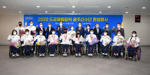 [½Åµ¿¾Æ¹æ¼Û=±èÀçÂù±âÀÚ]±¤ÁÖ±¤¿ª½Ã´Â 13ÀÏ ½Ãû ÁßȸÀǽǿ¡¼­ 2020 µµÄìÆÐ·²¸²ÇÈ¿¡ ÃâÀüÇÑ ±¤ÁÖ¼±¼ö´ÜÀ» ȯ¿µÇÏ´Â Çà»ç¸¦ °³ÃÖÇß´Ù. À̳¯ ȯ¿µÇà»ç¿¡´Â µµÄìÆÐ·²¸²ÇÈ¿¡ ÃâÀüÇÑ Å¹±¸, ¾ç±Ã, Á¶Á¤, »ç°Ý µî 4°³ Á¾¸ñ 11¸í ±¹°¡´ëÇ¥ ¼±¼ö¿Í º¸Ä¡¾Æ, À°»ó ±¹°¡´ëÇ¥ ÄÚÄ¡¡¦