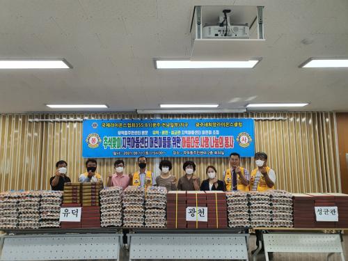 [½Åµ¿¾Æ¹æ¼Û=±èÀçÂù±âÀÚ]±¹Á¦¶óÀ̿½ºÇùȸ355-B1Áö±¸ ±¤ÁÖ»õÈñ¸Á¶óÀ̿½ºÅ¬·´(ȸÀå Á¶¼º·Ä) ȸ¿øÀϵ¿ÀÌ Áö³­ 11ÀÏ Ãß¼®À» ¸Â¾Æ À¯´öµ¿ ¼ÒÀç Áö¿ª¾Æµ¿¼¾ÅÍ ±³»ç ¹× ¾î¸°ÀÌ90¿©¸íÀ» ÃÊûÇÏ¿© Ãß¼®¼±¹°¼¼Æ®¿Í »ýÇÊǰÀ» °¢°¢ Àü´ÞÇÏ¿´´Ù. ±¤ÁÖ»õÈñ¸Á¶óÀ̿½ºÅ¬·´Àº 2018³â¡¦