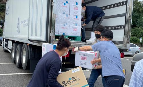 [½Åµ¿¾Æ¹æ¼Û=±è±â³² ±âÀÚ] ³²µµ²¿¸·(ÁÖ) °­¼º¿ø ´ëÇ¥´Â 15ÀÏ Áï¼®½Äǰ 7,600°³(475¹Ú½º)¿Í ¹é¹Ì10§¸ 200Æ÷, ÃÑ 6õ100¸¸ ¿ø »ó´çÀÇ ÈÄ¿ø¹°Ç°À» ¿©¼ö½Ã¿¡ Àü´ÞÇß´Ù. ¸ÅÄÞ²¿¸·ºñºö¹ä µî Áï¼®½Äǰ 7,600°³´Â ³ëÀοä¾ç½Ã¼³ µî ³ëÀκ¹Áö½Ã¼³ 34°³¼Ò¿Í Àå¾ÖÀΰÅÁֽü³ ¡¦