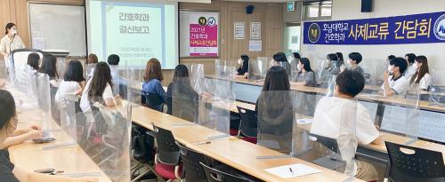 [½Åµ¿¾Æ¹æ¼Û=À̺´±¸±âÀÚ] È£³²´ëÇб³ °£È£Çаú(ÇаúÀå Á¶Àº¾Æ)´Â 9¿ù 15ÀÏ °ÇÇаü ¿¡¼­ ±³¼öÁø°ú Çлýȸ ÀÓ¿ø ¹× Çг⠴ëÇ¥°¡ Âü¿©ÇÑ °¡¿îµ¥ ¡®2021Çг⵵ 2Çб⠻çÁ¦±³·ù °£´ãȸ¡¯¸¦ ½Ç½ÃÇß´Ù. À̳¯ Çà»ç´Â Äڷγª19 ¹æ¿ªÁöħÀ» ÁؼöÇÑ °¡¿îµ¥ Çаú ±³¼öÁø, Çлýȸ¡¦