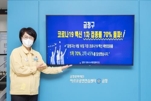 [½Åµ¿¾Æ¹æ¼Û=º¯ÀçÈ£ ±âÀÚ] ºÎ»ê ±ÝÁ¤±¸(±¸Ã»Àå Á¤¹Ì¿µ)ÀÇ Äڷγª19 ¹é½Å 1Â÷ Á¢Á¾·üÀÌ Àüü Àα¸ÀÇ 70%¸¦ ³Ñ¾î¼­°í ¸¸ 18¼¼ ÀÌ»óÀÇ 1Â÷ Á¢Á¾À²Àº 77%¸¦ ³Ñ¾ú´Ù. ±ÝÁ¤±¸´Â Áö³­ 16ÀÏ 12½Ã ±âÁØ ±ÝÁ¤±¸ÀÇ Äڷγª19 ¹é½Å 1Â÷ Á¢Á¾ Àοø 16¸¸ 1263¸íÀ¸·Î Àα¸ ´ëºñ 1Â÷ Á¢Á¾¡¦
