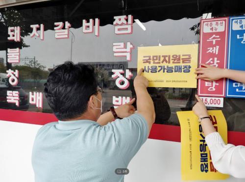 [½Åµ¿¾Æ¹æ¼Û=±èÀçÂù±âÀÚ] ±¤ÁÖ ±¤»ê±¸ ±â¾÷ÁÖÄ¡ÀǼ¾ÅͰ¡ Àü ±¹¹Î Àç³­Áö¿ø±Ý »ç¿ë ¿©ºÎ¸¦ ½±°Ô ¾Ë ¼ö ÀÖµµ·Ï °¢ »ó°¡¿¡ ¾È³» ½ºÆ¼Ä¿¸¦ ¹èºÎÇß´Ù. ÃÖ±Ù ÇöÀå ÄÁ¼³ÆÃ °úÁ¤¿¡¼­ Àç³­Áö¿ø±Ý »ç¿ë °¡´É ¿©ºÎ¸¦ ¹¯´Â ¼ÒºñÀÚ°¡ ¸¹´Ù´Â ¼Ò»ó°øÀÎÀÇ ¸ñ¼Ò¸®¸¦ ûÃëÇÑ ±¤»ê±¸ ±â¾÷¡¦