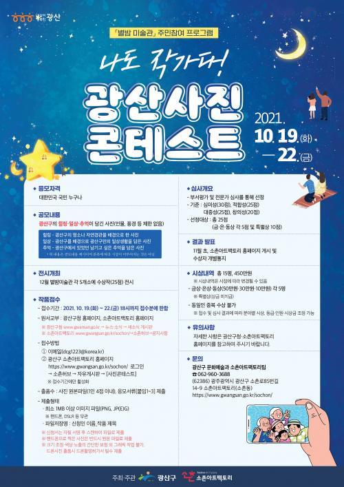 [½Åµ¿¾Æ¹æ¼Û=±èÀçÂù±âÀÚ] ±¤ÁÖ ±¤»ê±¸(±¸Ã»Àå ±è»ïÈ£)°¡ ½Ö¾Ï°ø¿ø µî 5°³ º°¹ã ¹Ì¼ú°ü°ú ¿¬°èÇØ ¡®³ªµµ ÀÛ°¡´Ù! ±¤»ê»çÁøÄÜÅ×½ºÆ®¡¯ °ø¸ðÀüÀ» °³ÃÖÇÑ´Ù. À̹ø °ø¸ðÀüÀº ´ëÇѹα¹ ½Ã¹Î ´©±¸³ª Âü¿©ÇÒ ¼ö ÀÖ´Ù. ±¤»ê±¸¸¦ ¹è°æÀ¸·Î ÇÑ Èú¸µ(¸í¼Ò, ÀÚ¿¬°æ°ü), ÀÏ»ó(±¤»ê±¸¡¦