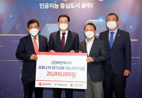 [½Åµ¿¾Æ¹æ¼Û=±èÀçÂù±âÀÚ] ±¤ÁÖ±¤¿ª½Ã´Â 29ÀÏ ¿ÀÀü ½Ãû Á¢°ß½Ç¿¡¼­ ¢ßÈ£³²Áö¿À¿µ, ¢ßÇØ¾ç¿¡³ÊÁö, Àü°©¼ö ´ëÇÑÀå¾ÖÀι豸Çùȸ ȸÀå°ú ¿¬´Þ¾Æ ¼º±Ýǰ ±âʽÄÀ» °¡Á³´Ù. ¢ßÈ£³²Áö¿À¿µÀº Äڷγª19 Àå±âÈ­¿¡ µû¸¥ À§±â±Øº¹À» À§ÇØ ¾Æµ¿¿ë ¸¶½ºÅ© 30¸¸ÀåÀ» ±âºÎÇß´Ù. ¸¶½ºÅ©¡¦