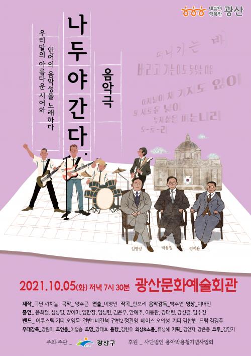 [½Åµ¿¾Æ¹æ¼Û=±èÀçÂù±âÀÚ] ±¤ÁÖ ±¤»ê±¸(±¸Ã»Àå ±è»ïÈ£)°¡ 10¿ù5ÀÏ ¿ÀÈÄ 7½Ã30ºÐ ±¤»ê¹®È­¿¹¼úȸ°ü¿¡¼­ ¿ë¾Æ ¹Ú¿ëö Çöâ À½¾Ç±Ø ¡®³ªµÎ¾ß°£´Ù¡¯ °ø¿¬À» °³ÃÖÇÑ´Ù. À̳¯ °ø¿¬Àº ±¤»ê±¸°¡ Áö¿ªÀ» ´ëÇ¥ÇÏ´Â ½ÃÀÎÀÎ ¿ë¾Æ ¹Ú¿ëöÀÇ ½Ã¿Í »îÀ» ÀçÁ¶¸íÇϰí 30ȸ¸¦ ¸ÂÀº ¿ë¡¦