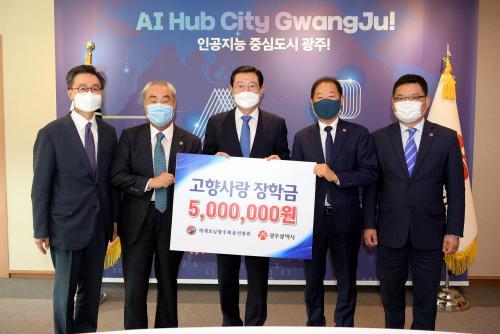 [½Åµ¿¾Æ¹æ¼Û=±èÀçÂù ±âÀÚ] ±¤ÁÖ±¤¿ª½Ã´Â 1ÀÏ ¿ÀÀü ½Ãû Á¢°ß½Ç¿¡¼­ À̿뼷 ½ÃÀå, ±è¿µÀ± ¼¼°èÈ£³²Çâ¿ìȸÃÑ¿¬ÇÕȸÀå, À̵¿¼ö ÀüÀÓ È¸Àå µîÀÌ Âü¼®ÇÑ °¡¿îµ¥ °íÇâ»ç¶û ÀåÇÐ±Ý ±âʽÄÀ» °³ÃÖÇß´Ù. ÀÌ ³¯ ±âŹµÈ ÀåÇÐ±Ý 500¸¸¿øÀº ¾ÖÇâ½ÉÀÌ ³²´Ù¸£°í Àå·¡°¡ Ã˸ÁÇÑ °¡Á¤Çü¡¦