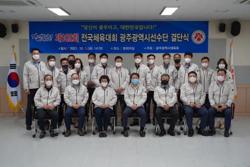 [½Åµ¿¾Æ¹æ¼Û=À̺´±¸ ±âÀÚ] ±¤ÁÖ±¤¿ª½ÃüÀ°È¸°¡ 7ÀÏ ¾ÕÀ¸·Î ´Ù°¡¿Â Á¦102ȸ Àü±¹Ã¼À°´ëȸ »óÀ§ ÀÔ»óÀ» ´ÙÁüÇϱâ À§ÇÑ °á´Ü½ÄÀ» ¿­¾ú´Ù. ½ÃüÀ°È¸´Â 1ÀÏ ¿ÀÈÄ 2½Ã üÀ°È¸°ü ÁßȸÀǽǿ¡¼­ ¡®Á¦102ȸ Àü±¹Ã¼À°´ëȸ ±¤Áֽü±¼ö´Ü °á´Ü½Ä¡¯À» °³ÃÖÇß´Ù°í ¹àÇû´Ù. ÄڷΡ¦