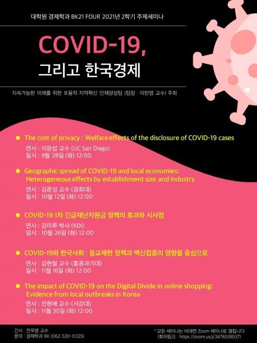 [½Åµ¿¾Æ¹æ¼Û=À̺´±¸ ±âÀÚ]Àü³²´ë ´ëÇпø °æÁ¦Çаú BK ¡®Áö¼Ó°¡´ÉÇÑ ¹Ì·¡¸¦ À§ÇÑ Æ÷¿ëÀû Áö¿ªÇõ½Å ÀÎÀç¾ç¼ºÆÀ¡¯(ÆÀÀå ÀÌÂù¿µ ±³¼ö)ÀÌ ¡®COVID19-±×¸®°í Çѱ¹°æÁ¦¡¯¶ó´Â ÁÖÁ¦·Î ¸ðµÎ 5Â÷·Ê¿¡ °ÉÄ£ ½Ã¸®Áî ¼¼¹Ì³ª¸¦ ÁøÇàÇÑ´Ù. ÇØ¿Ü¼®ÇбîÁö ÃÊûµÈ À̹ø ¼¼¹Ì³ª¿¡¼­´Â ¡¦