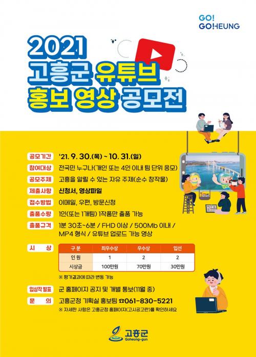 [½Åµ¿¾Æ¹æ¼Û=¹Ú±¤¿Á ±âÀÚ] °íÈﱺ(±º¼ö ¼Û±Í±Ù)Àº °íÈïÀ» È«º¸ÇÒ ¼ö ÀÖ´Â Âü½ÅÇÑ ¿µ»óÀ» ¹ß±¼Çϱâ À§ÇØ ¡®2021 °íÈﱺ À¯Æ©ºê È«º¸ ¿µ»ó °ø¸ðÀü¡¯À» °³ÃÖÇÑ´Ù°í ¹àÇû´Ù. À̹ø °ø¸ðÀüÀº ÀÚÀ¯ ÁÖÁ¦·Î °íÈïÀ» ¾Ë¸± ¼ö ÀÖ´Â ÅåÅå Æ¢´Â ¾ÆÀ̵ð¾î¸¦ Ç¥ÇöÇÑ ¿µ»óÀ̶ó¸é ´ëÇÑ¡¦